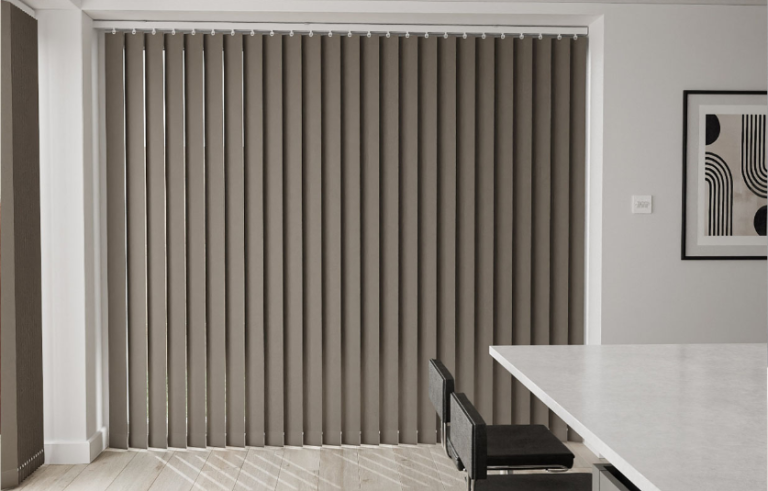Vertical Blinds - the ideal solution for larger spaces, like patio/french doors or offices. They compliment other blind styles very well, are easy to operate to your desired privacy or shade. Vertical Blinds can be drawn to one side or split evenly.